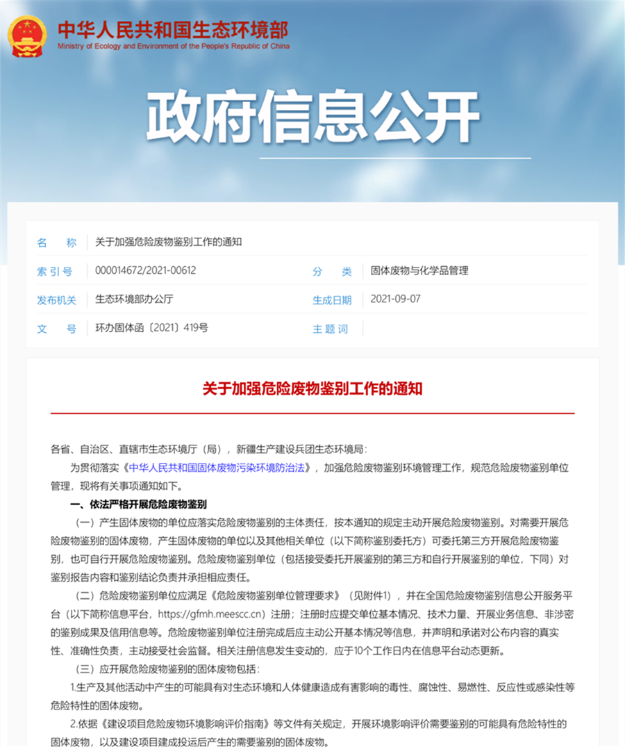 通知指出,產(chǎn)生固體廢物的單位應落實(shí)危險廢物鑒別的主體責任,按本通知的規定主動(dòng)開(kāi)展危險廢物鑒別。