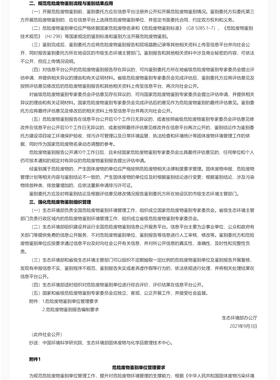 危險廢物鑒別單位應滿(mǎn)足《危險廢物鑒別單位管理要求》,并在全國危險廢物鑒別信息公開(kāi)服務(wù)平臺注冊。