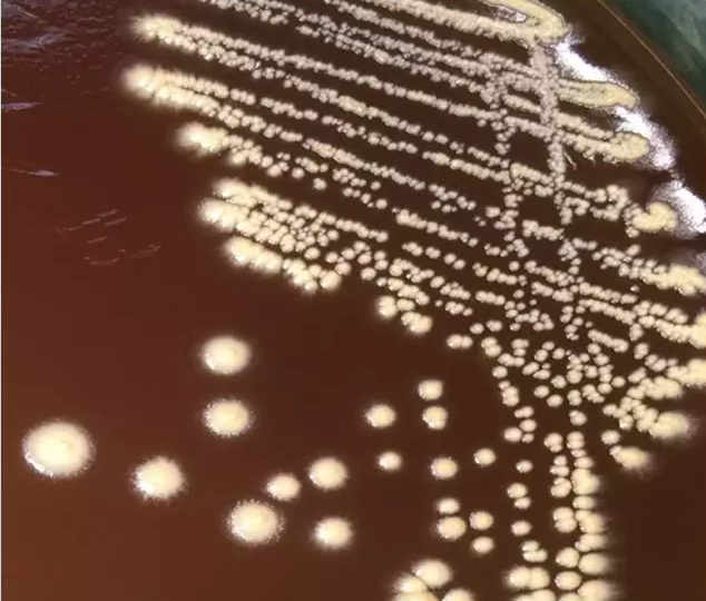 2011年以來(lái),我們采用基因測序技術(shù),先后在我院和幫助其他醫院完成40株分枝桿菌的鑒定,并通過(guò)其表型特征的觀(guān)察,發(fā)現了光滑型、粗糙型和中間型等三種不同的分枝桿菌菌落(見(jiàn)圖1-3)。